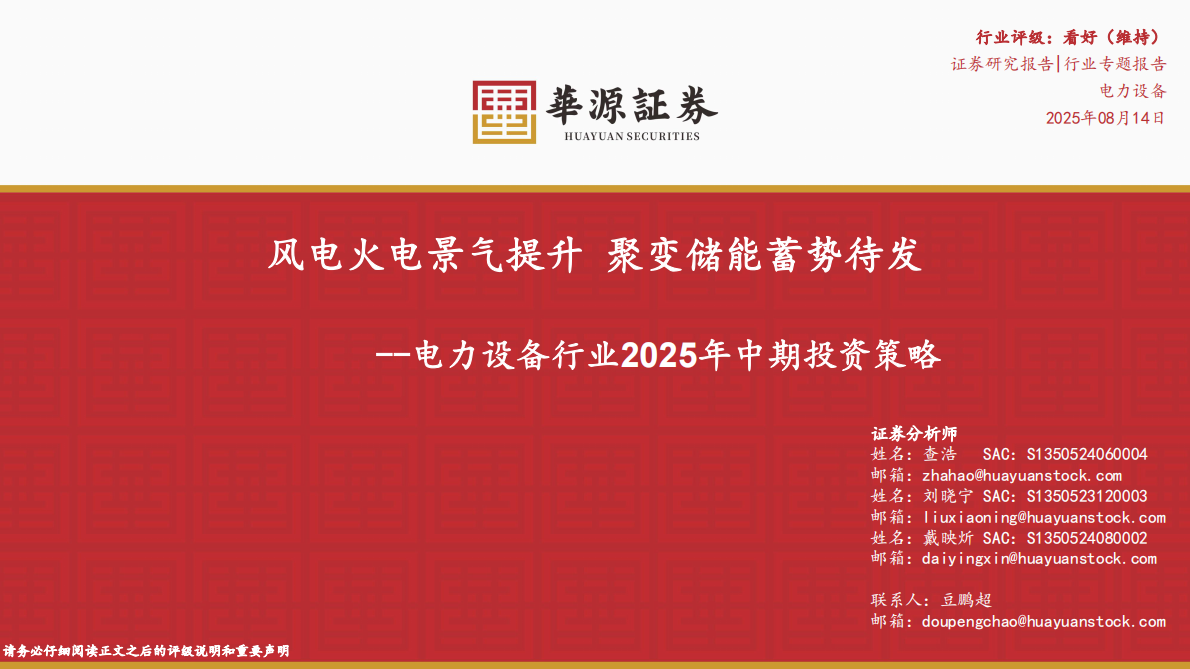 华源证券:电力设备行业2025年中期投资策略:风电火电景气提升 聚变储能蓄势待发