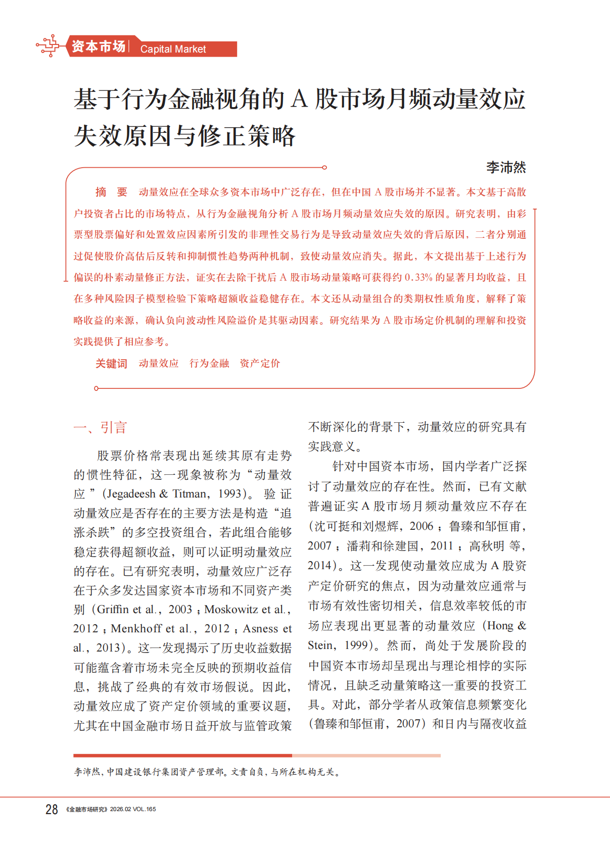 金融市场研究:基于行为金融视角的A股市场月频动量效应失效原因与修正策略