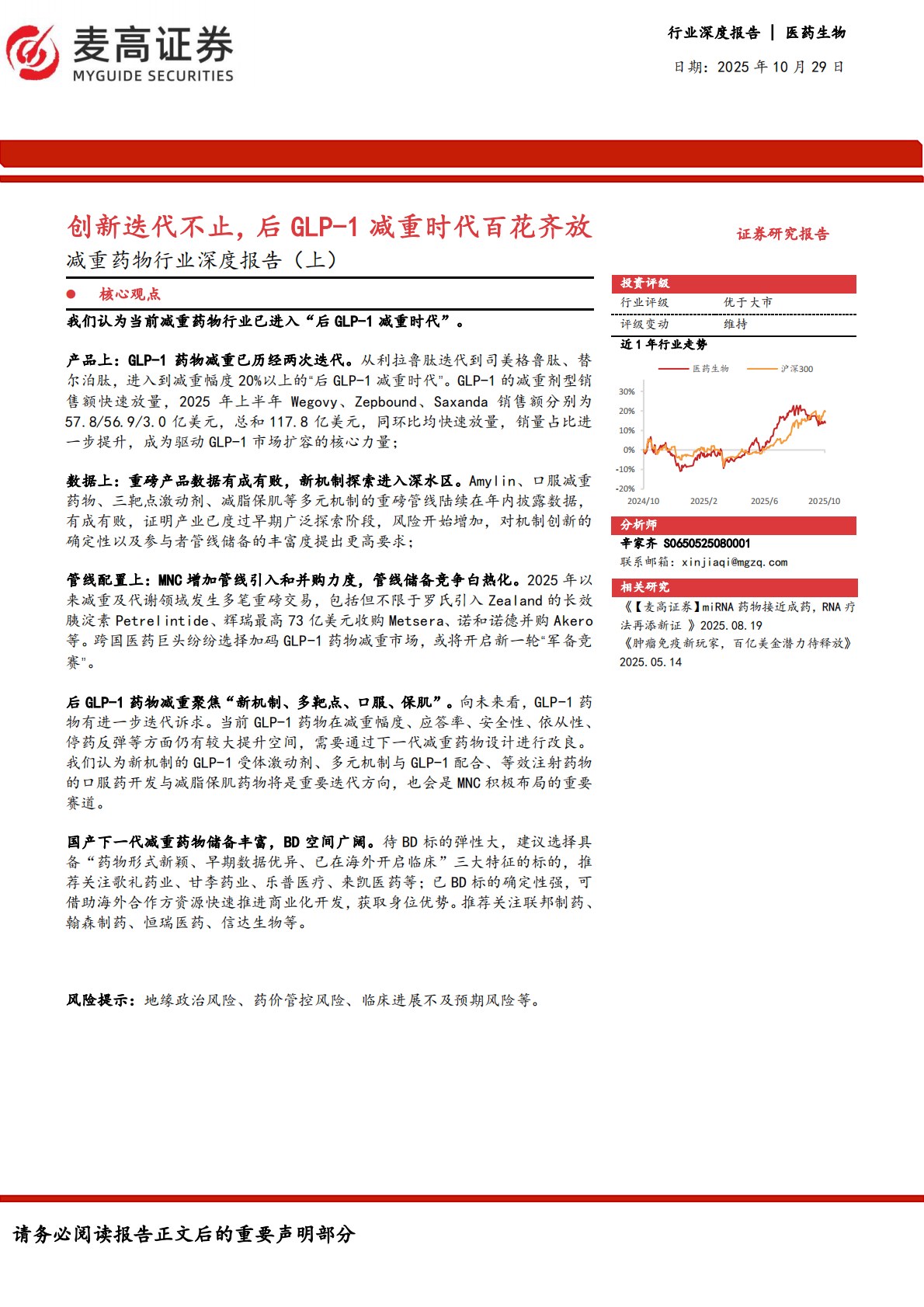 麦高证券:减重药物行业深度报告(上)——创新迭代不止,后GLP-1减重时代百花齐放
