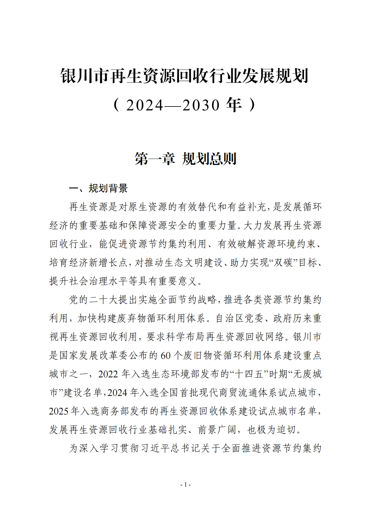 银川市再生资源回收行业发展规划( 2024—2030 年)