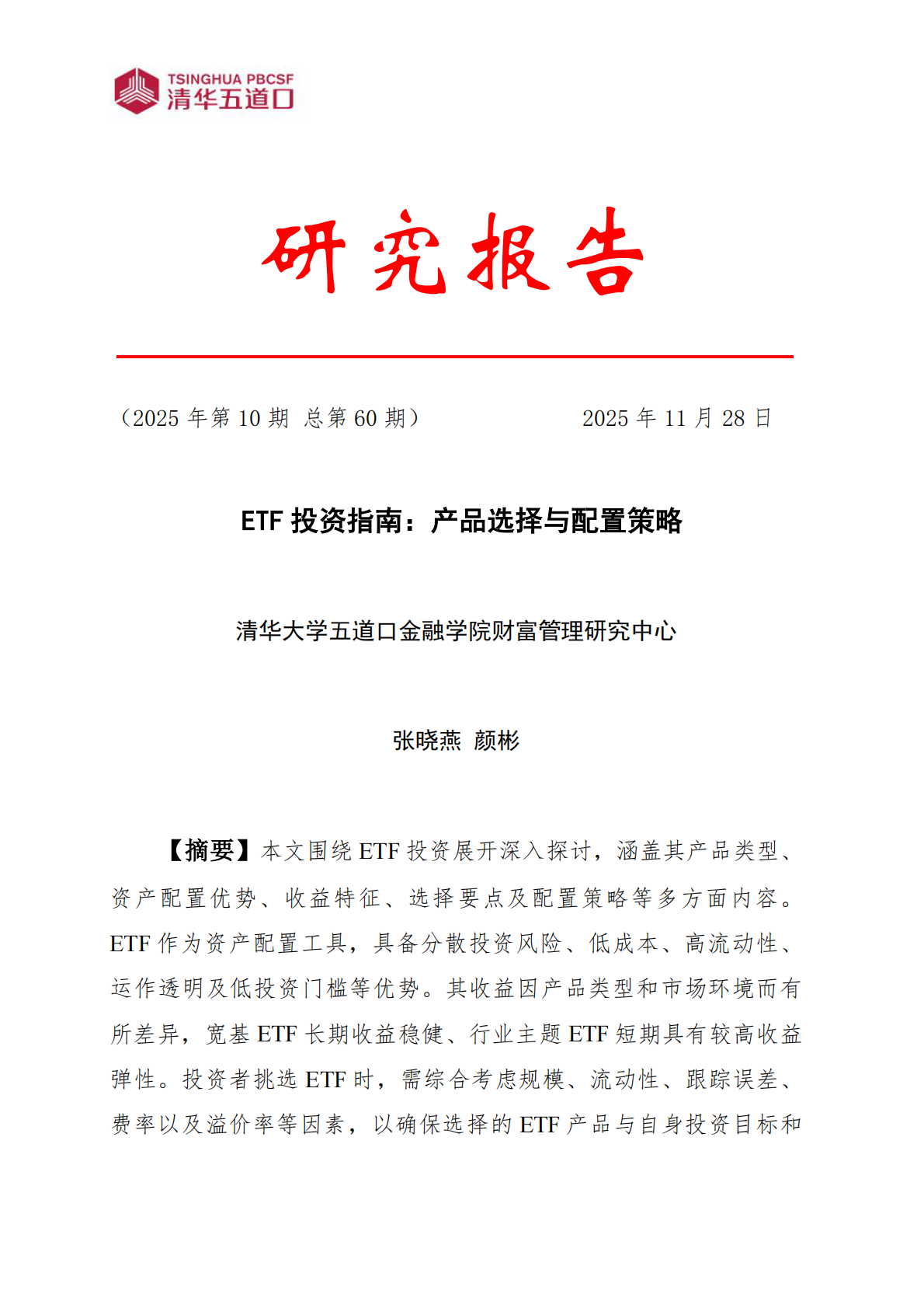 清华五道口:研究报告【2025年第10期】ETF投资指南:产品选择与配置策略
