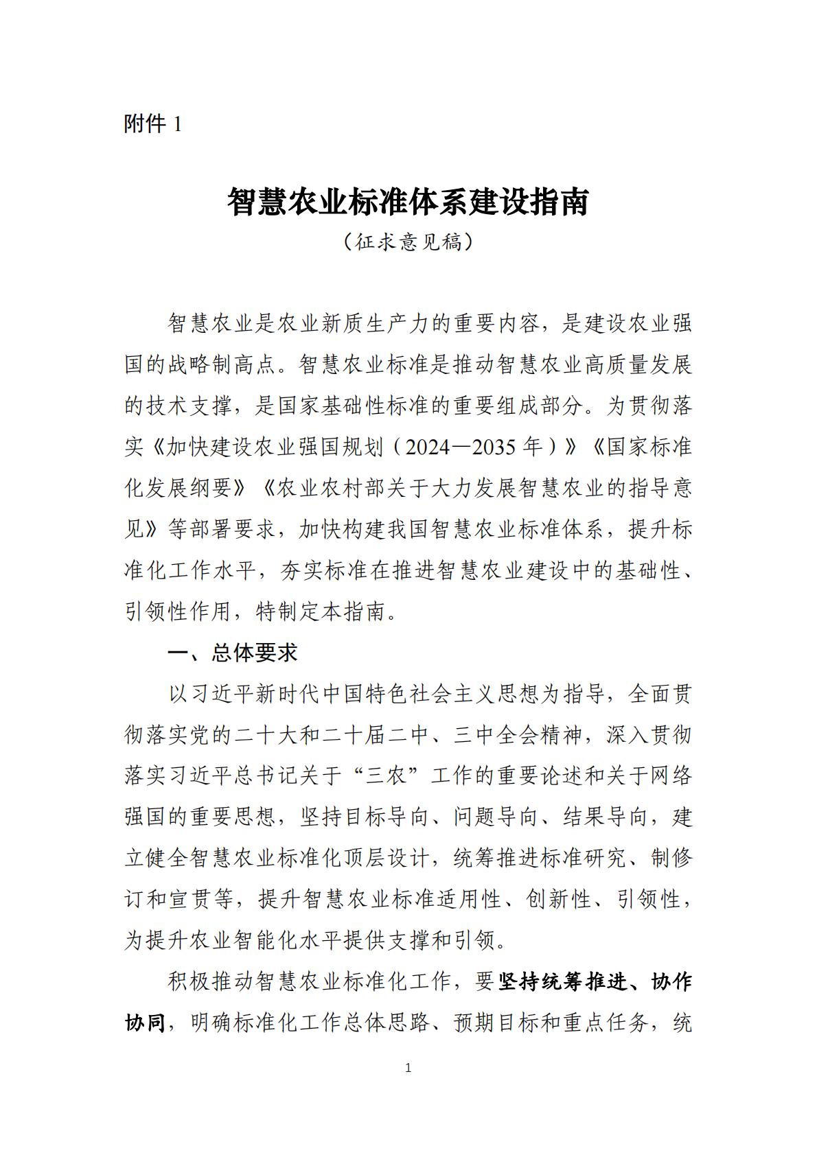 农业农村部:2025智慧农业标准体系建设指南(征求意见稿)