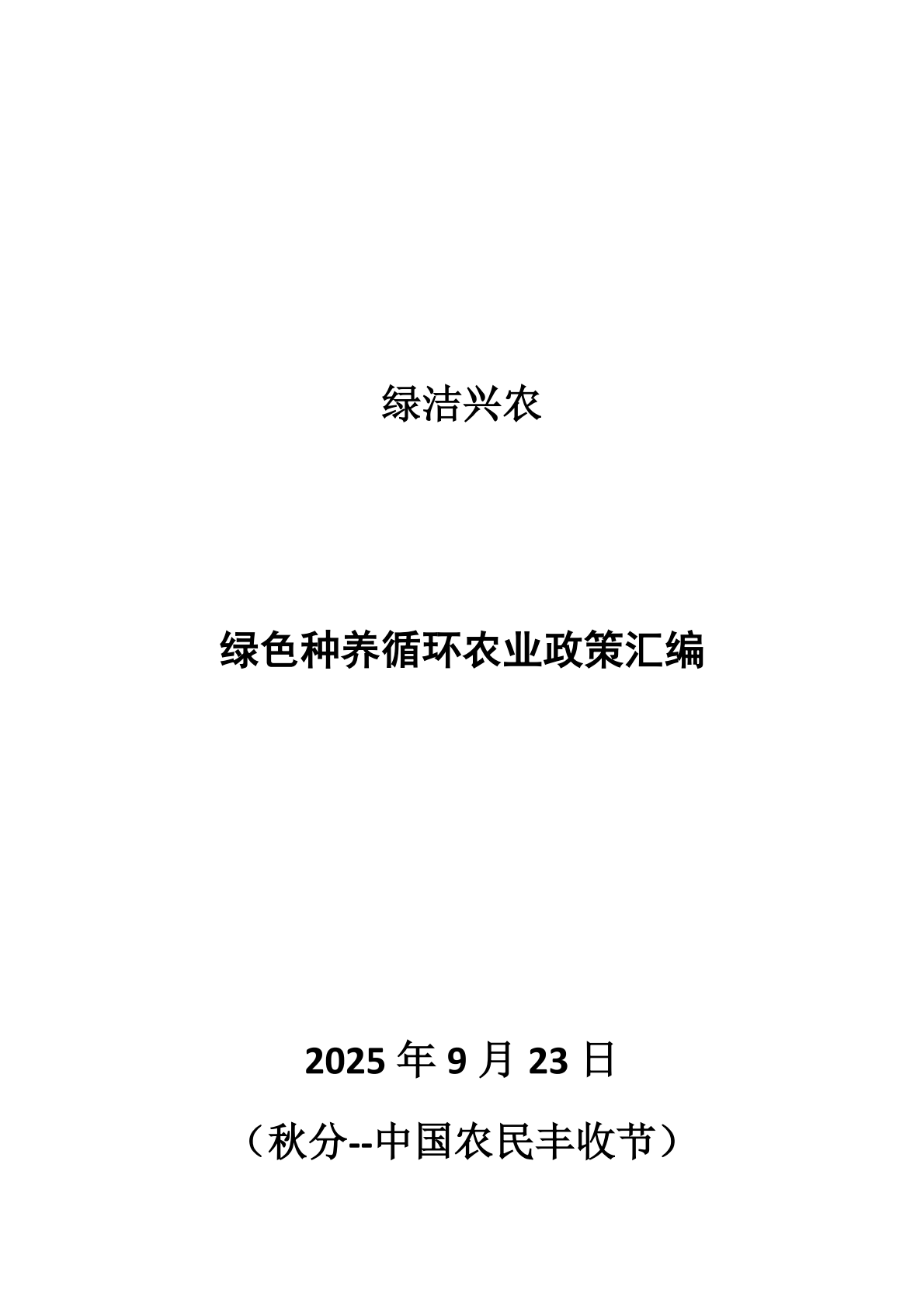 绿洁兴农:2025绿色种养循环农业政策汇编