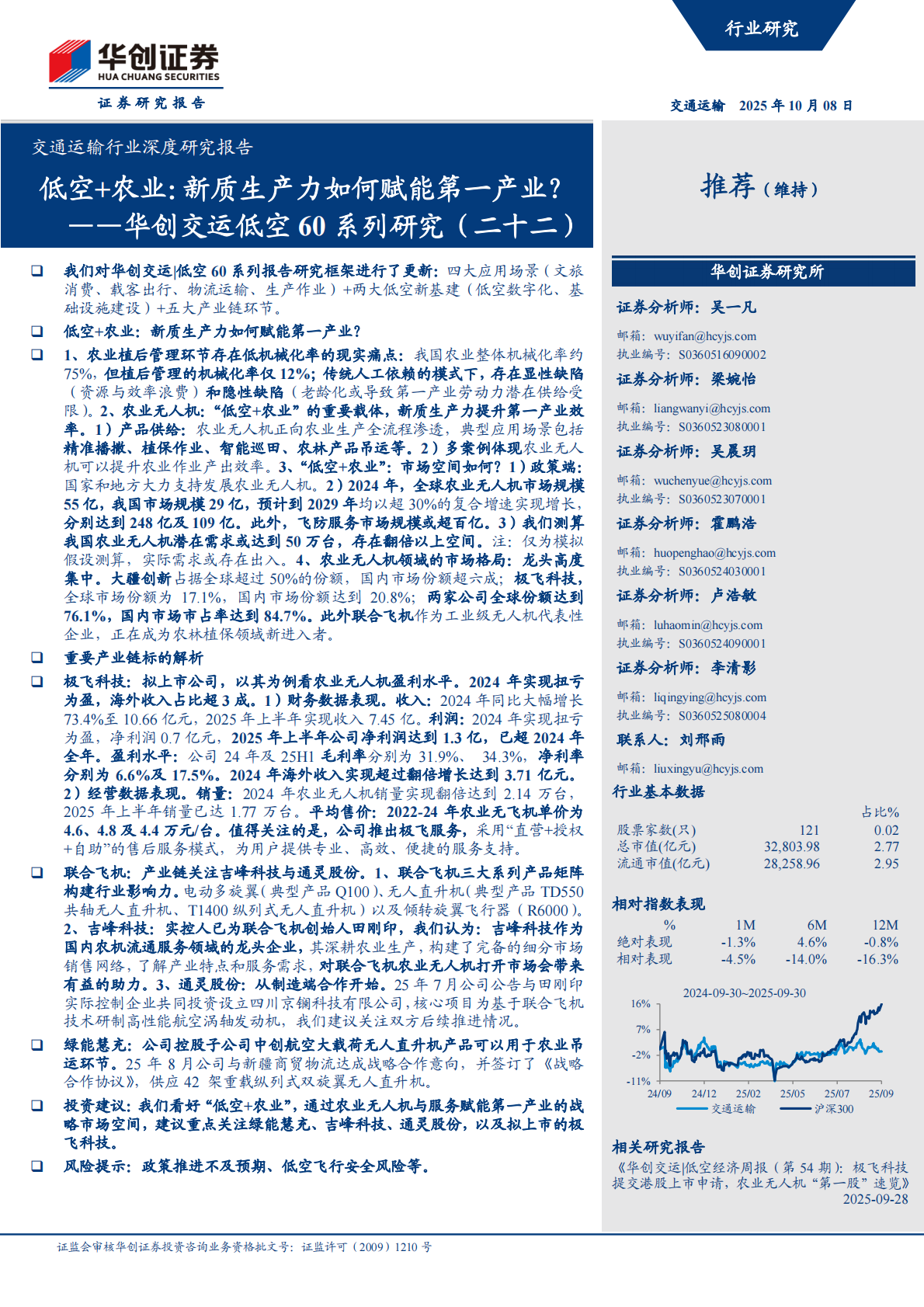 华创证券:华创交运低空60系列研究(二十二):低空+农业:新质生产力如何赋能第一产业?