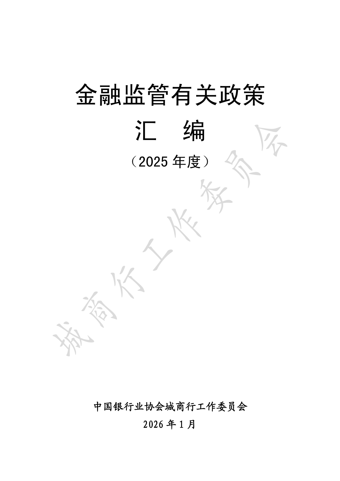 中国银行业协会城商行工作委员会:金融监管有关政策汇编(2025年度)
