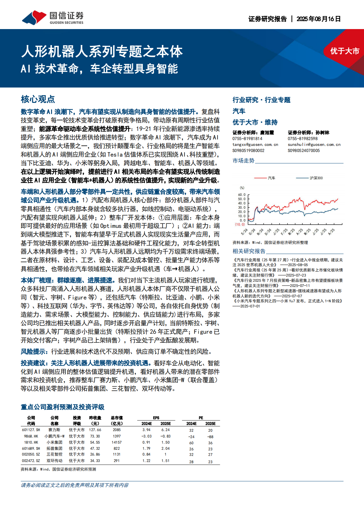 国信证券:人形机器人系列专题之本体:AI技术革命,车企转型具身智能