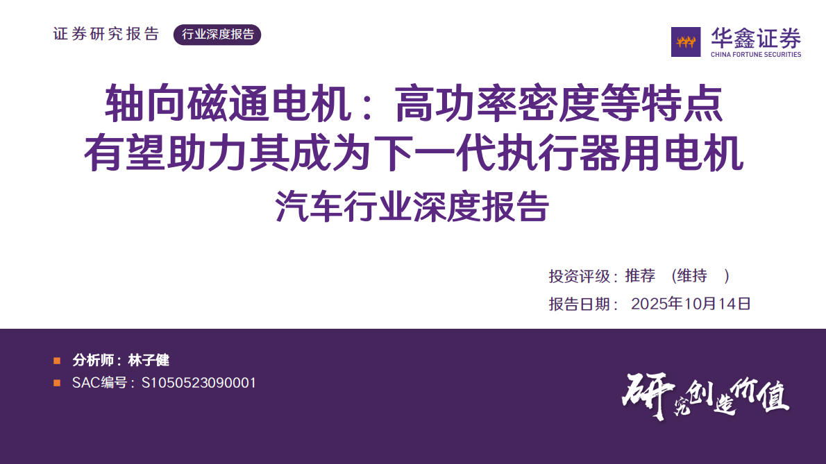 华鑫证券:汽车行业深度报告:轴向磁通电机,高功率密度等特点有望助力其成为下一代执行器用电机
