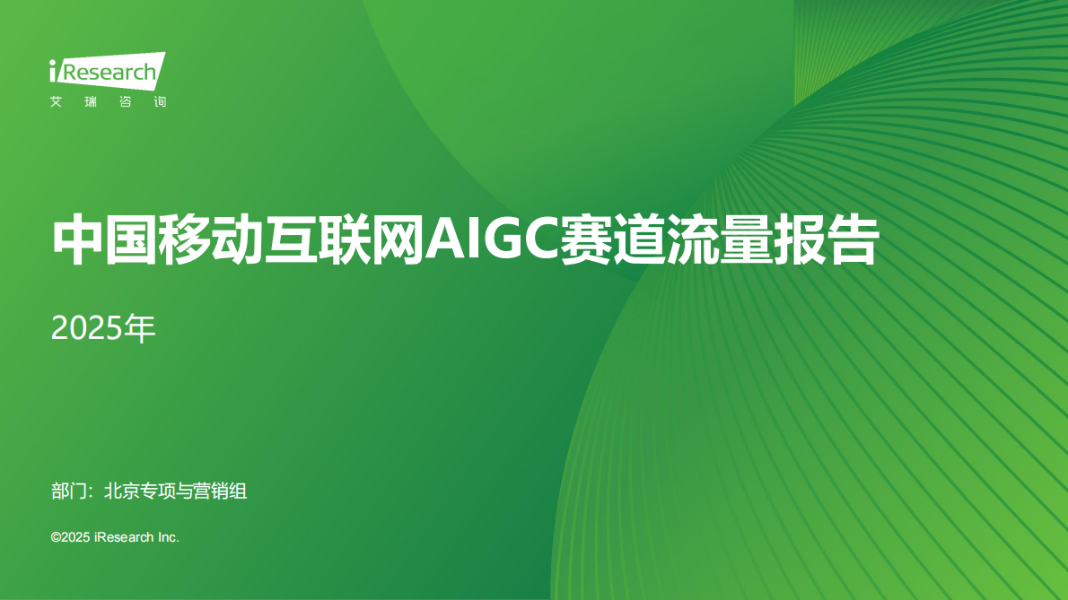 艾瑞咨询:2025年中国移动互联网AIGC赛道流量报