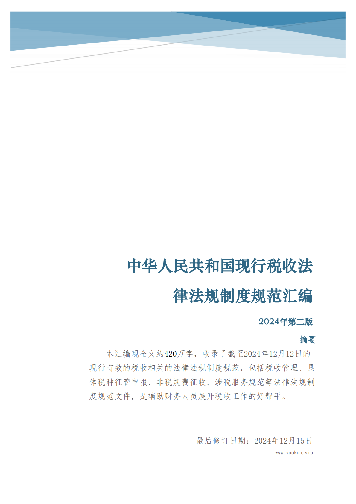 中华人民共和国现行税收法律法规制度规范汇编 2024年第二版