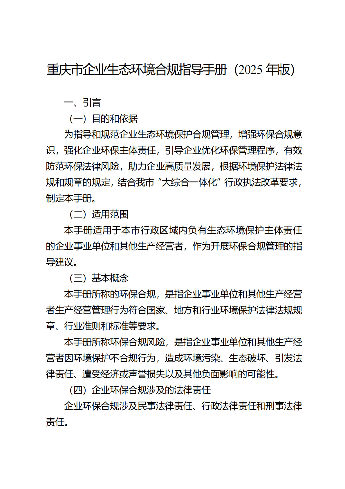 重庆市生态环境局:重庆市企业生态环境合规指导手册(2025年版)