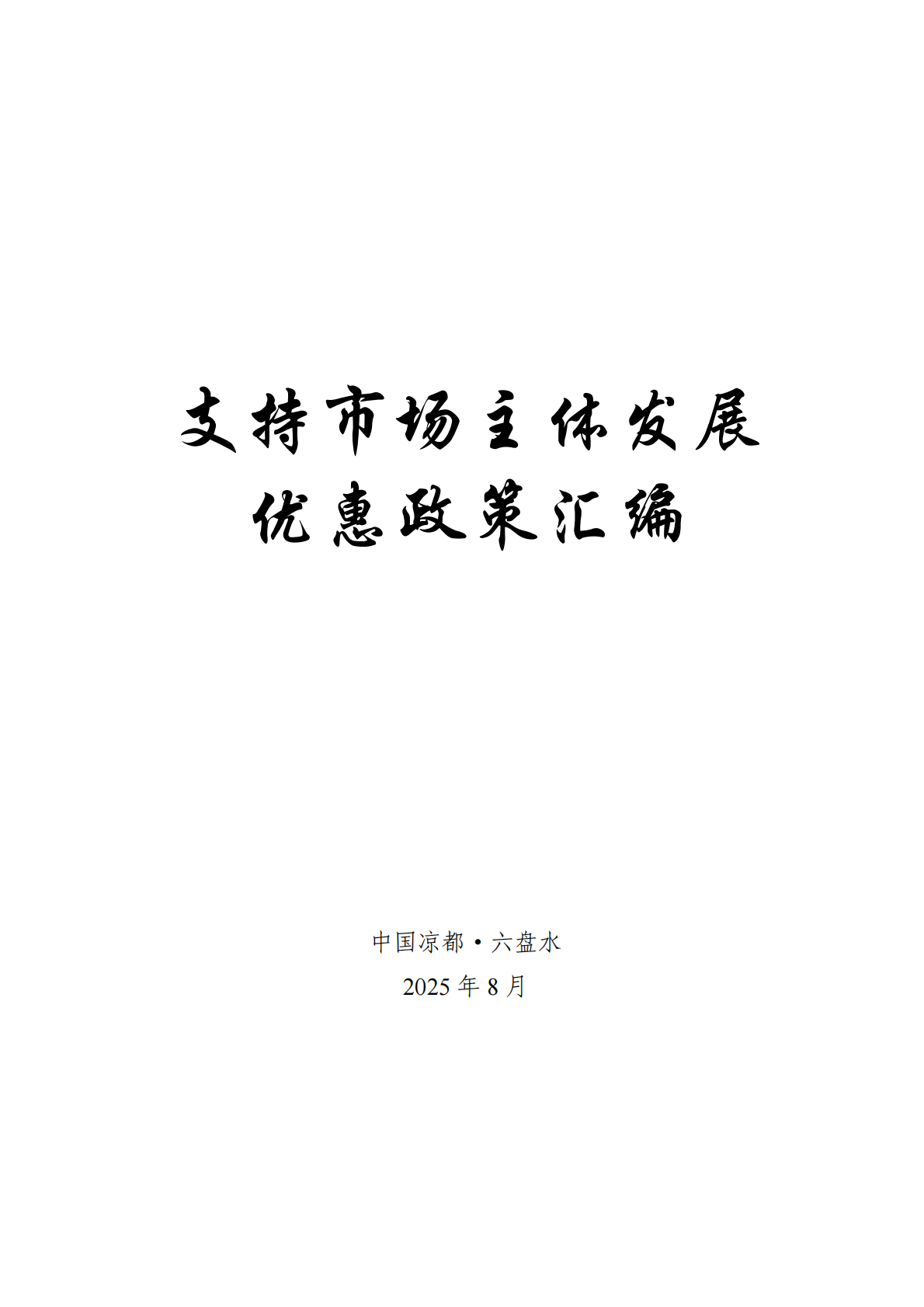 六盘水市市场监督管理局:2025年六盘水市支持市场主体发展优惠政策汇编