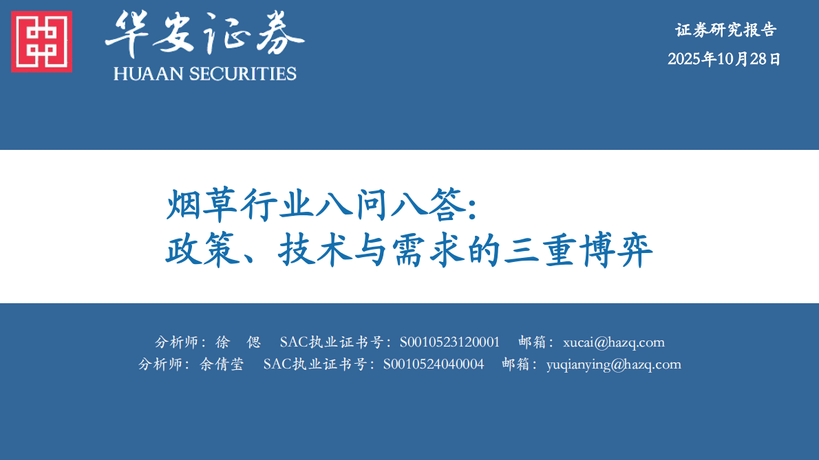 华安证券:烟草行业八问八答:政策、技术与需求的三重博弈