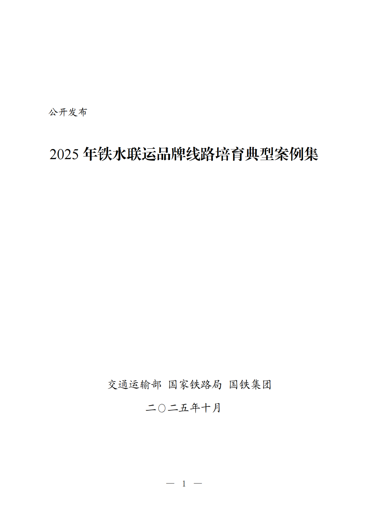 交通运输部:2025年铁水联运品牌线路培育典型案例集
