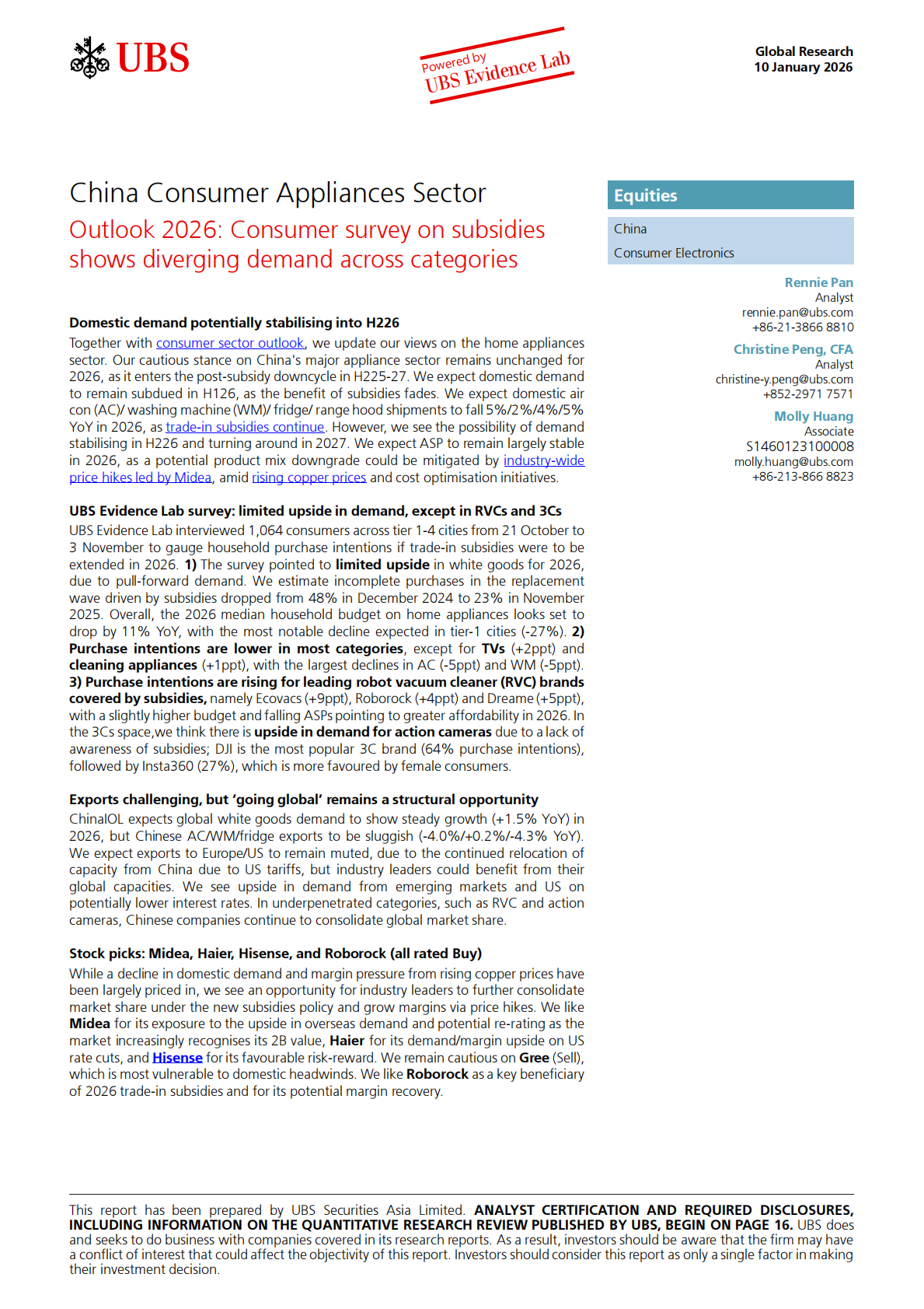 瑞银:2026年中国家电行业展望消费者补贴调查显示各类别需求分化(英文)