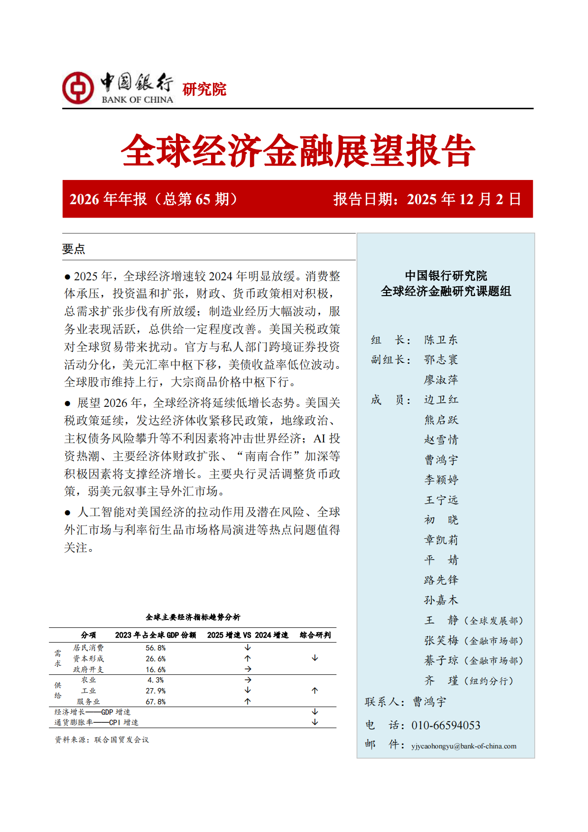 中国银行研究院:中国银行全球经济金融展望报告(2026年):全球经济延续低增长态势,货币政策调整步伐出现转变