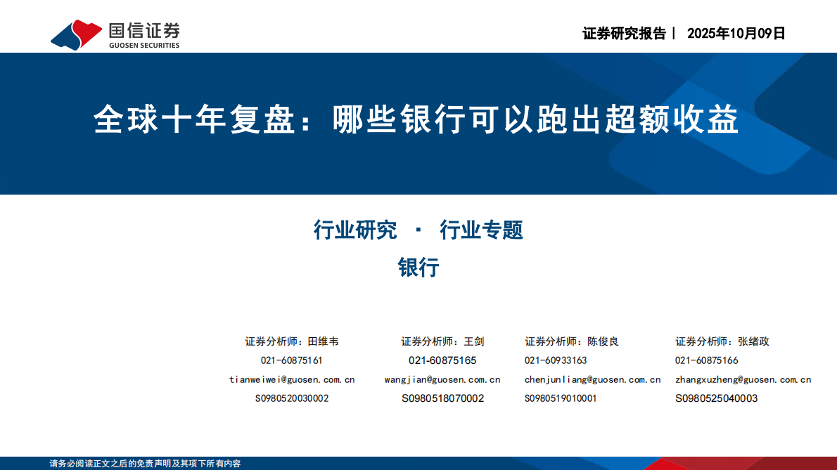 国信证券:银行行业专题:全球十年复盘:哪些银行可以跑出超额收益