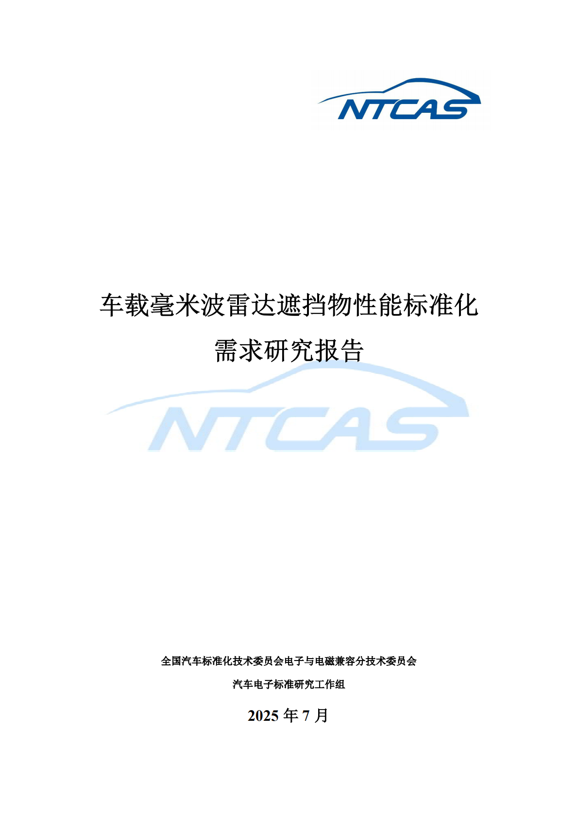 汽标委:2025年车载毫米波雷达遮挡物性能标准化需求研究报告