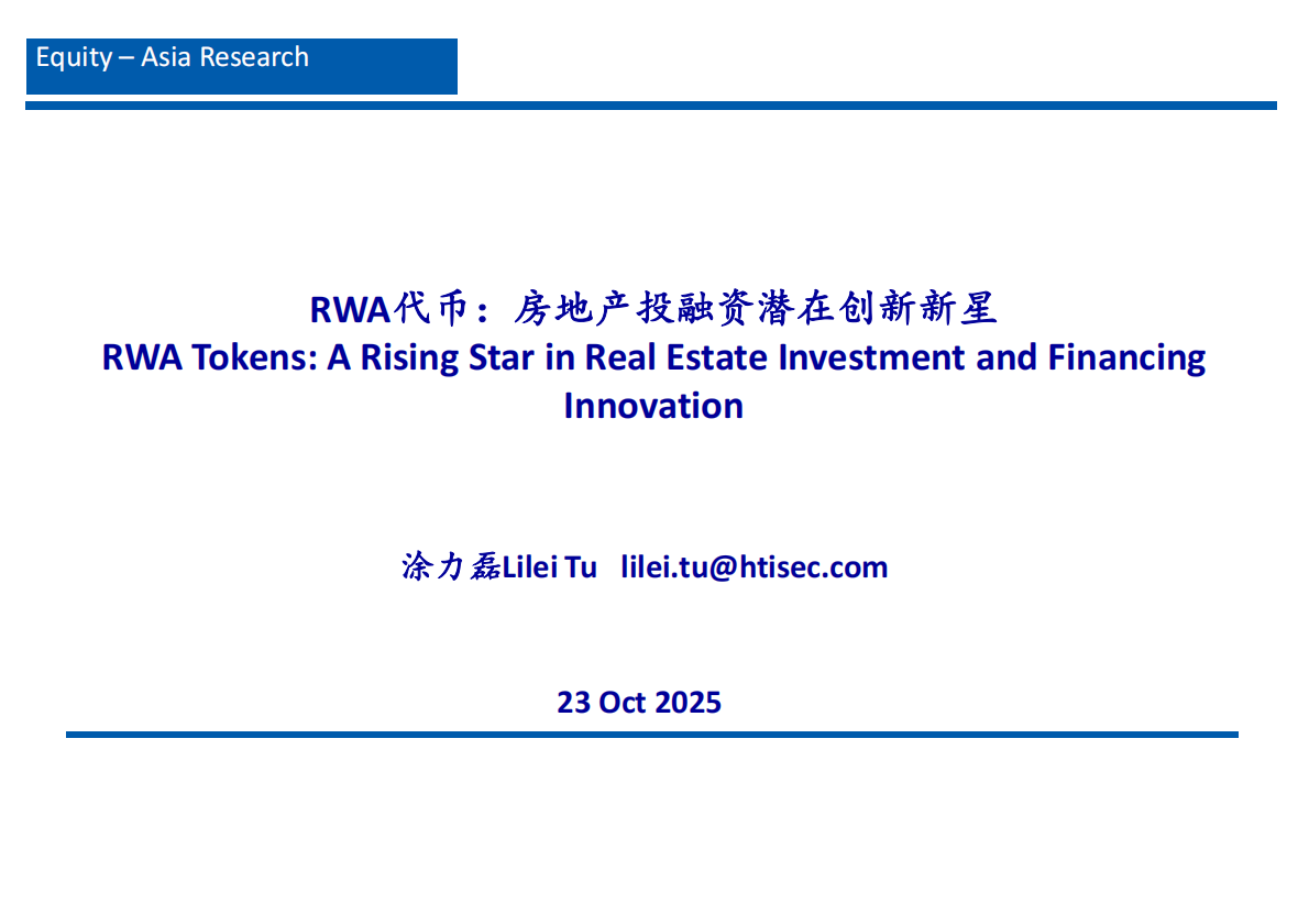 涂力磊:2025年RWA代币:房地产投融资潜在创新新星报告