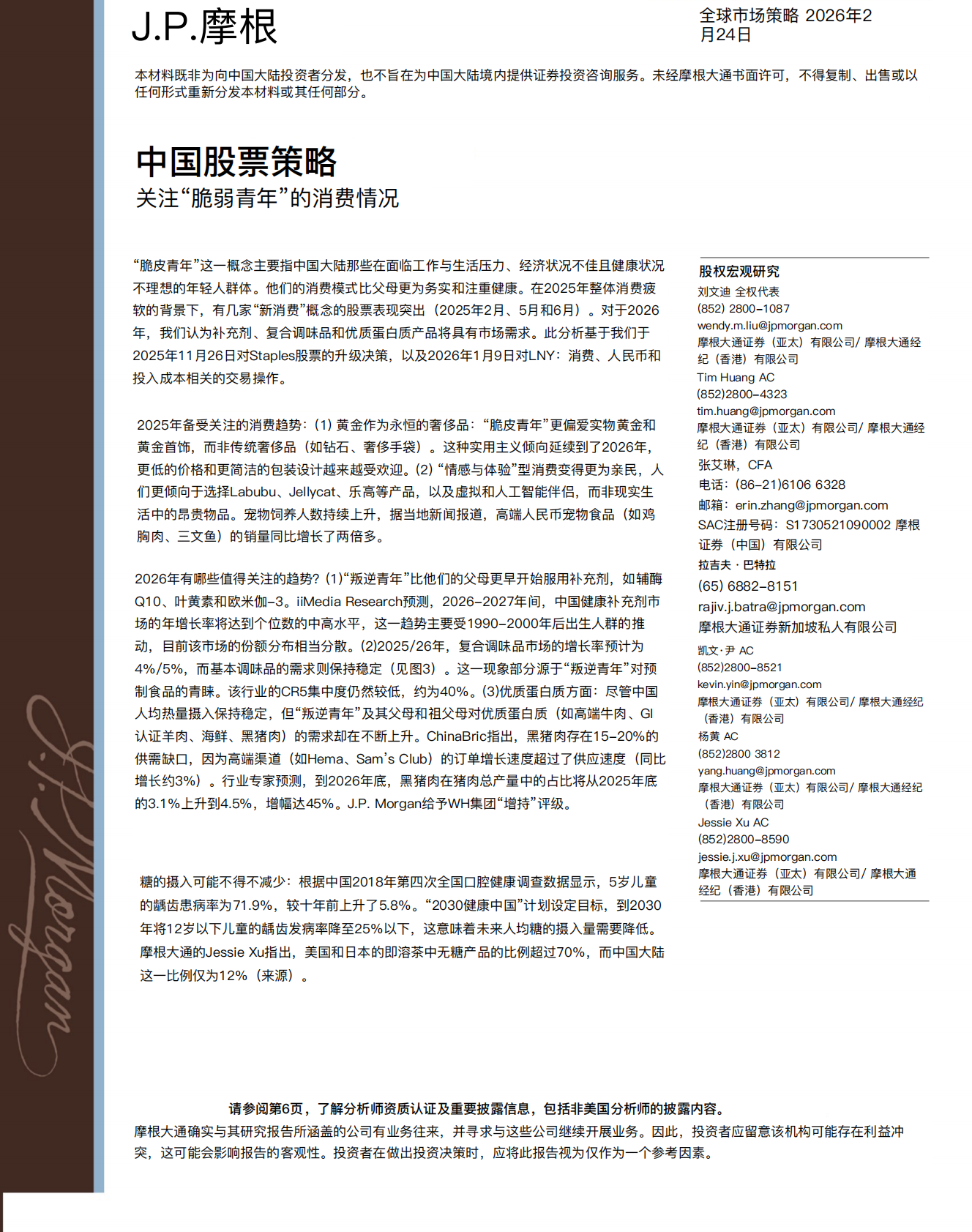 摩根大通:中国股票策略:聚焦“脆皮青年”消费
