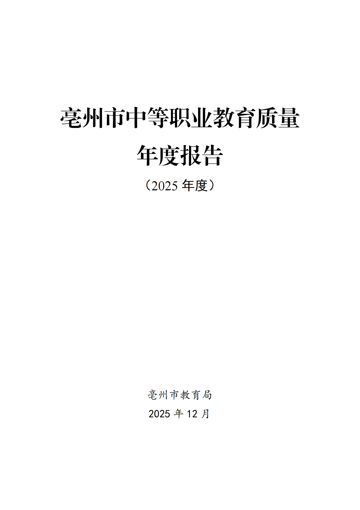 亳州市教育局:亳州市中等职业教育质量年度报告(2025年度)
