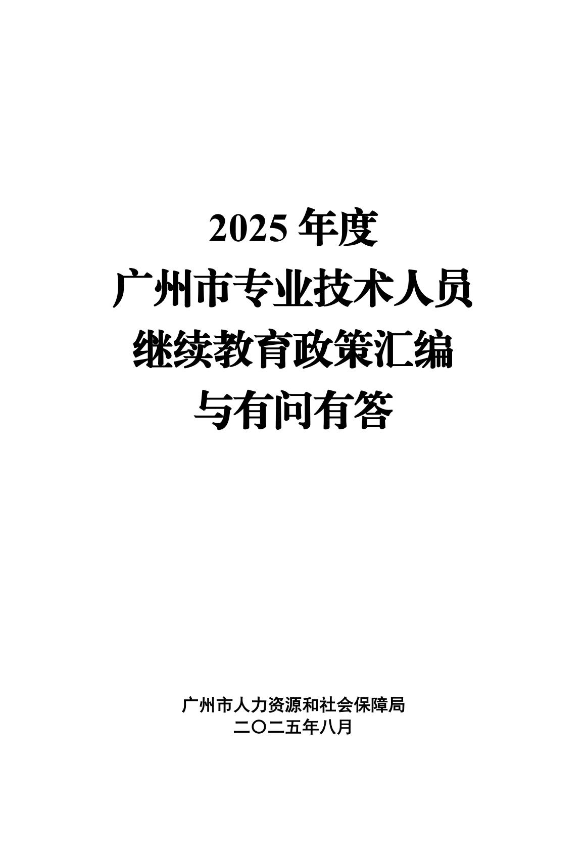 广州市人力资源和社会保障局:2025 年度广州市专业技术人员继续教育政策汇编与有问有答