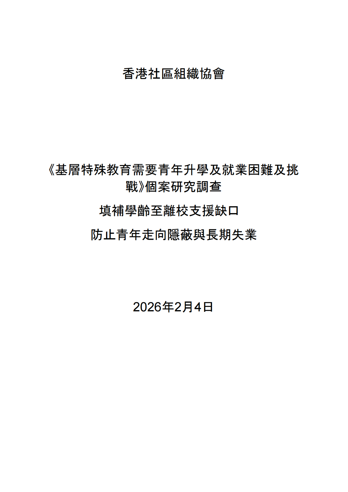 香港社区组织协会:2026特殊教育需要青年升學及就業困難及挑戰