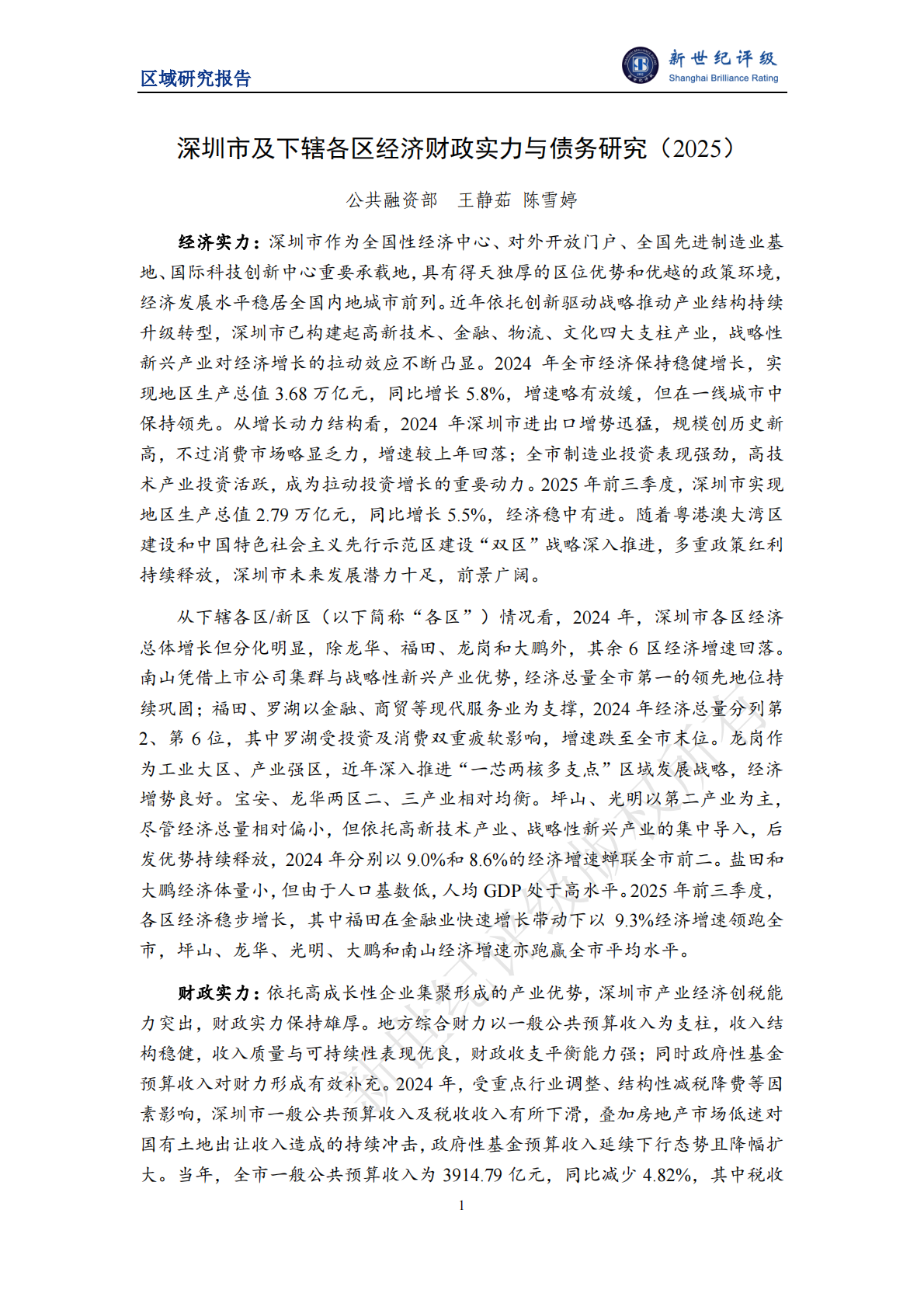 深圳市及下辖各区经济财政实力与债务研究(2025)