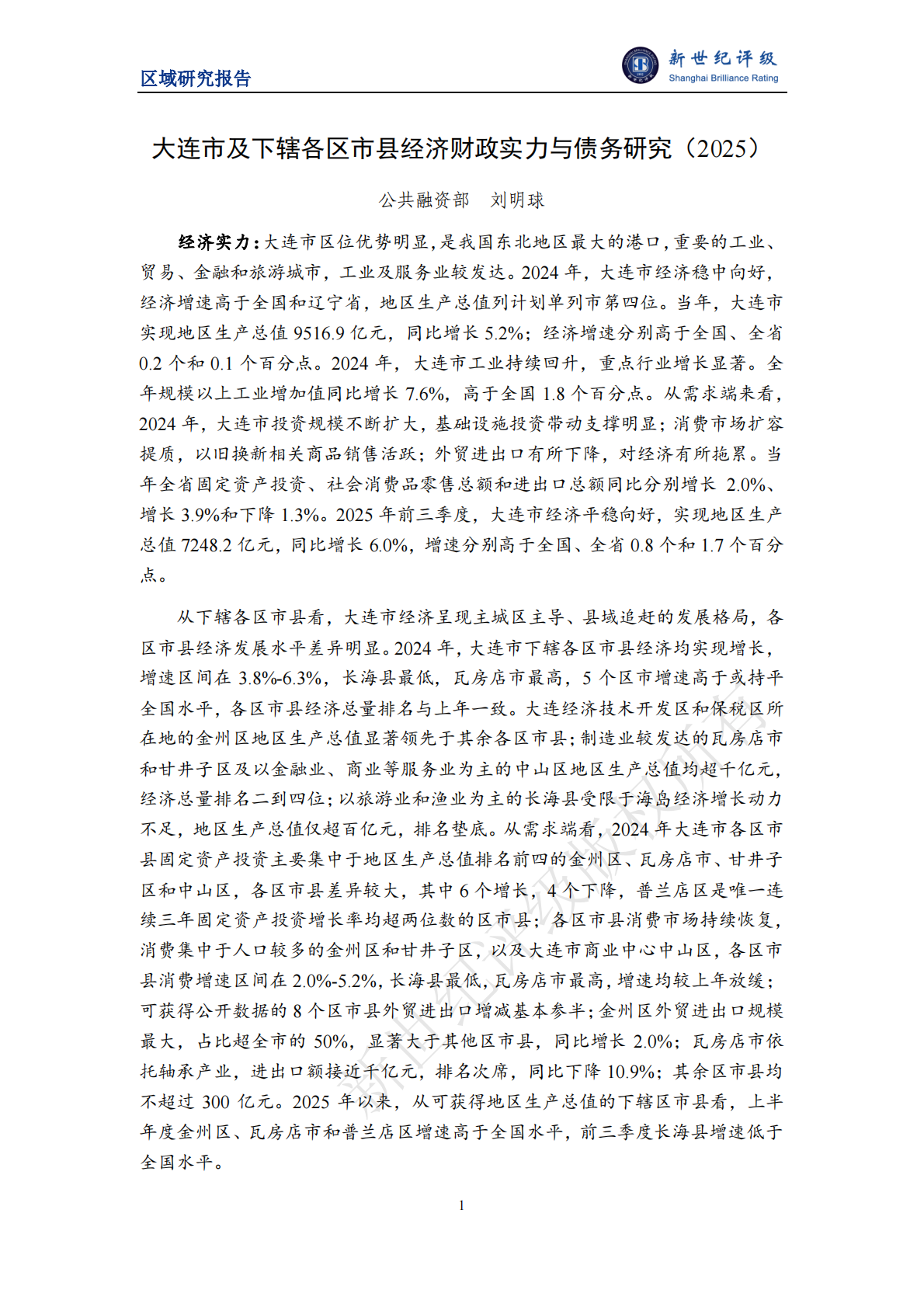 新世纪评级:大连市及下辖各区市县经济财政实力与债务研究(2025)
