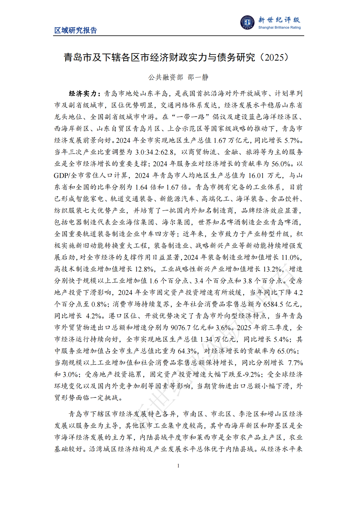 新世纪评级:青岛市及下辖各区市经济财政实力与债务研究(2025)