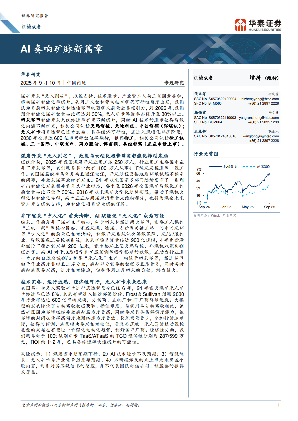 华泰证券:机械设备专题研究:AI奏响矿脉新篇章