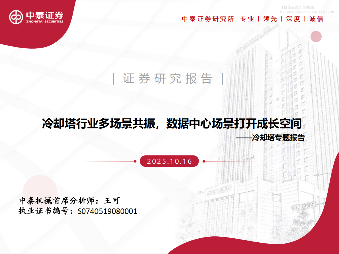 中泰证券:机械行业冷却塔专题报告:冷却塔行业多场景共振,数据中心场景打开成长空间